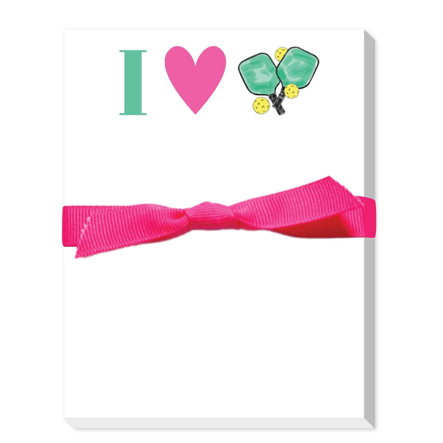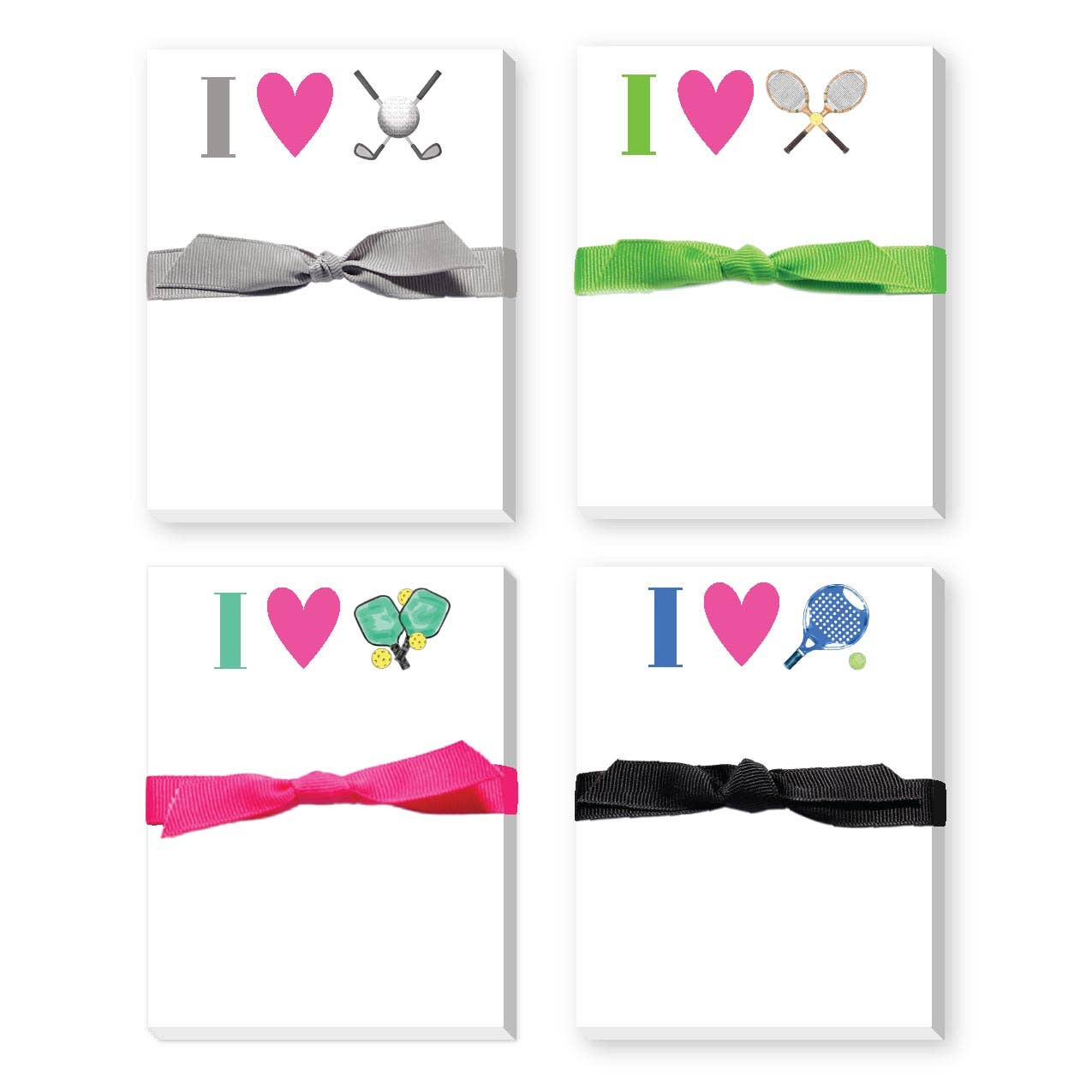 Embrace your love for sports with Donovan Designs' I Love Pickleball, Golf, Tennis, Paddle Mini Notepads. These 4.25"x5.5" notepads, with 50 sheets each, are ideal for jotting down quick notes or messages.