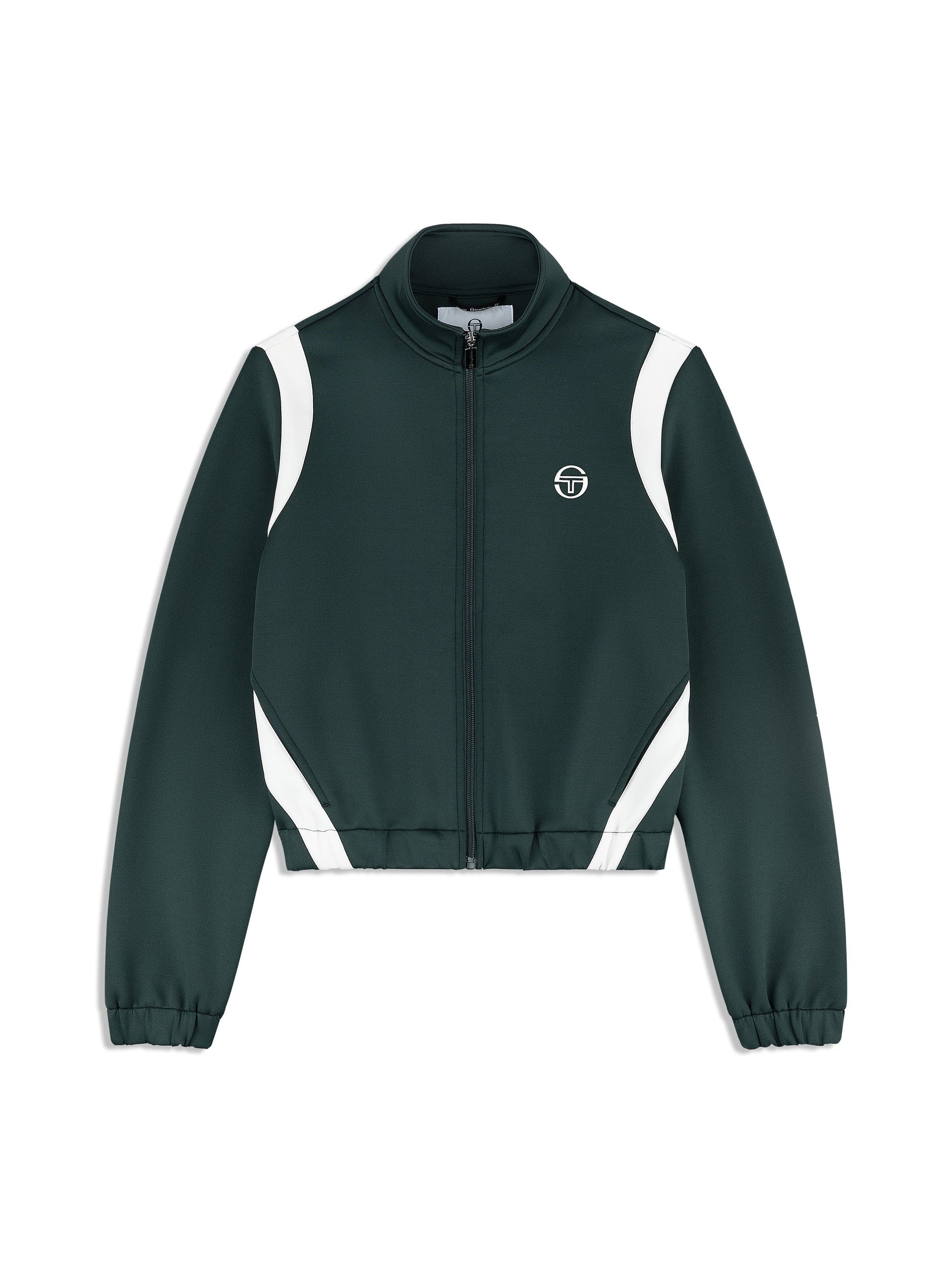 A sleek fusion of form and function. The Anna Track Jacket is crafted from premium performance diver fabric—smooth, breathable, and engineered with 4-way stretch for all-day ease. Cut in a flattering cropped silhouette, it features contrast paneling for a modern, minimalist statement—whether you're headed to the gym, the café, or just moving through your day.