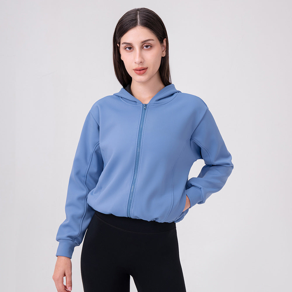 Autumn Winter Fleece Yoga Jacket Hoodie Loose Zip Casual Sports Top Warm Fitness Jacket