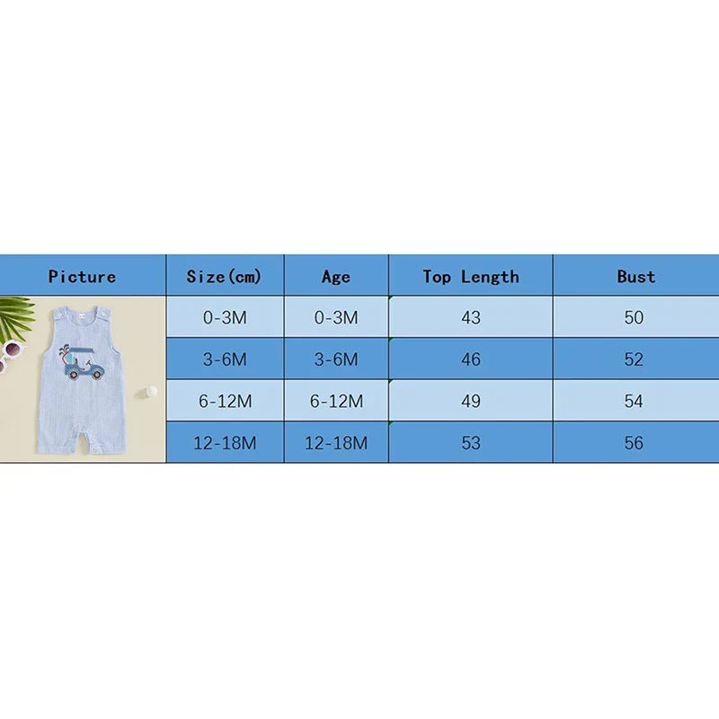 Baby Boys Jumpsuit Sleeveless Crew Neck Striped Embroidery Golf Cart Summer Romper