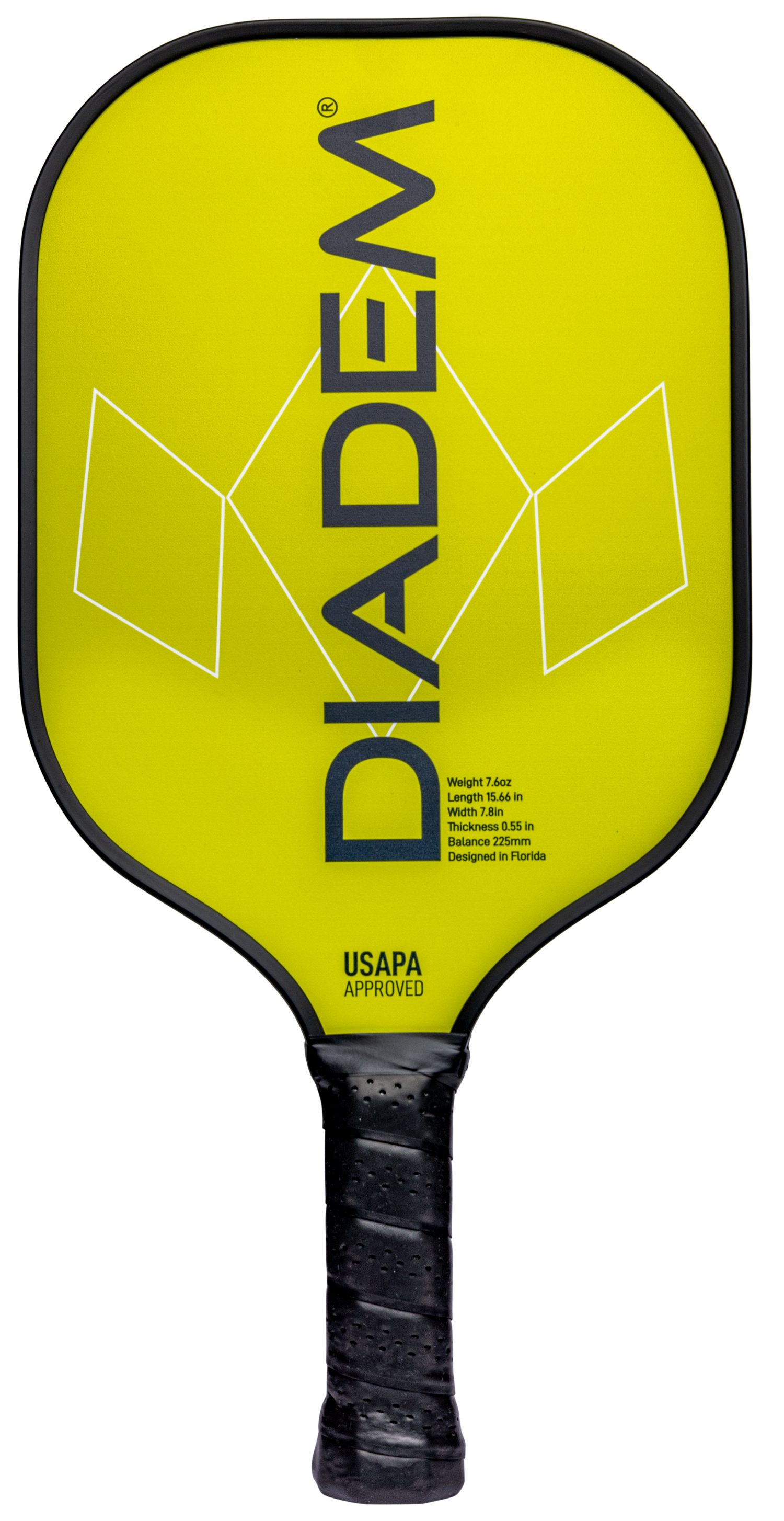 The DIADEM HERO PADDLE is the perfect paddle for the first time pickleball player. Low cost and comfortable to use, this paddle is ideal to learn the game of pickleball with. Its wide face gives you the maximum surface area to contact the ball as you are learning. Utilizing the same HMT fiber as our Riptide line, the Hero is light weight and easy to swing. The thicker bumper prevents damage during your learning days