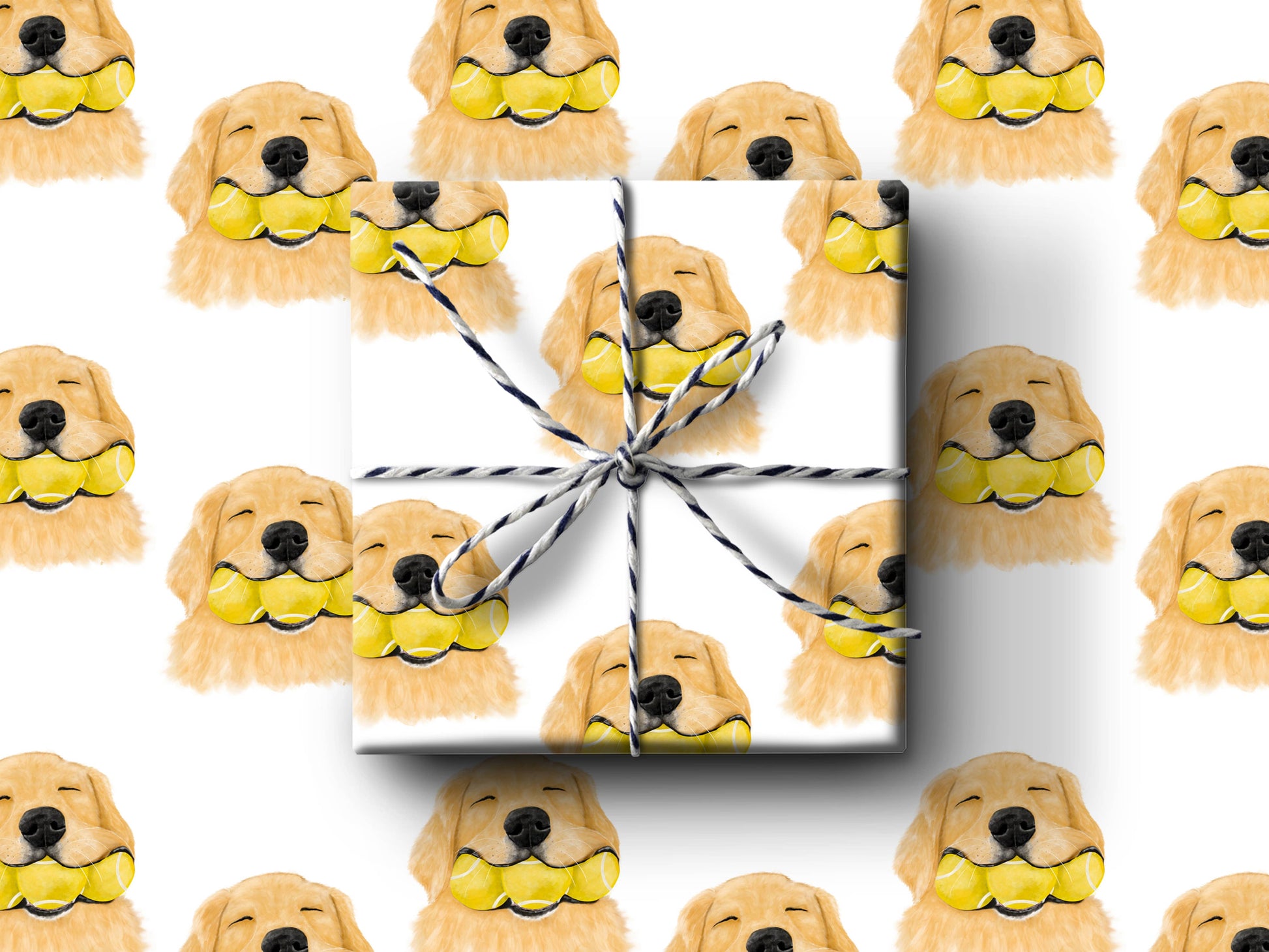 Dog With Tennis Balls Wrapping Paper: 3 Sheets Rolled In Cello