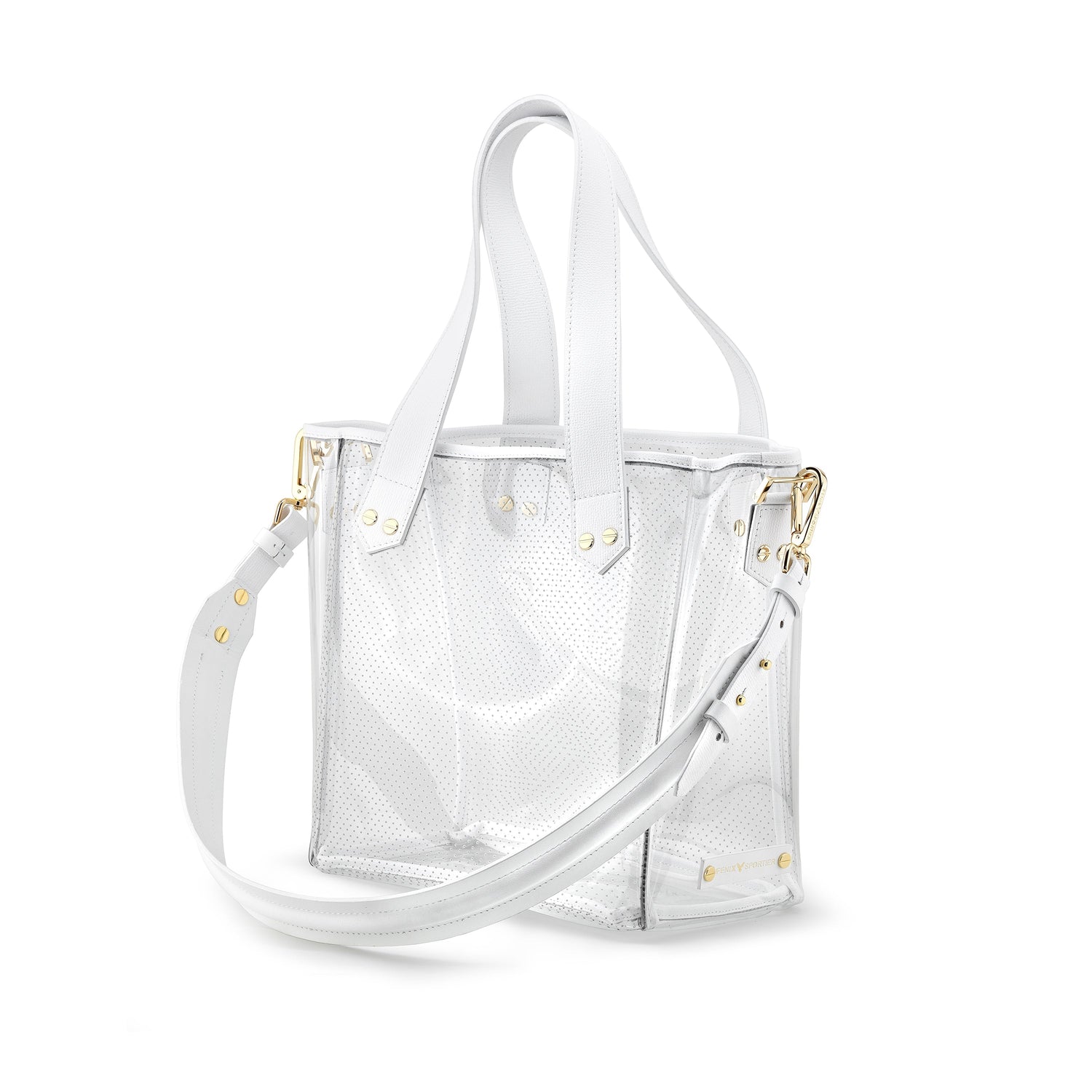 Gameday Bag - White Leather / Clear PVC / Gold Hardware