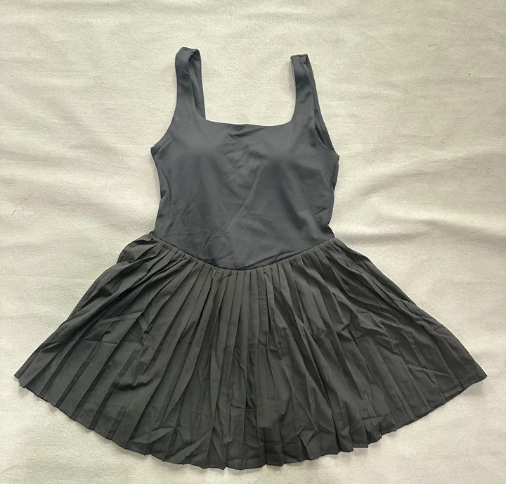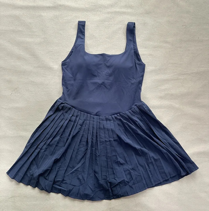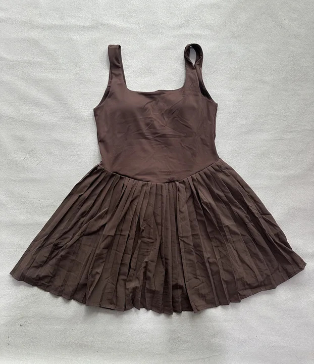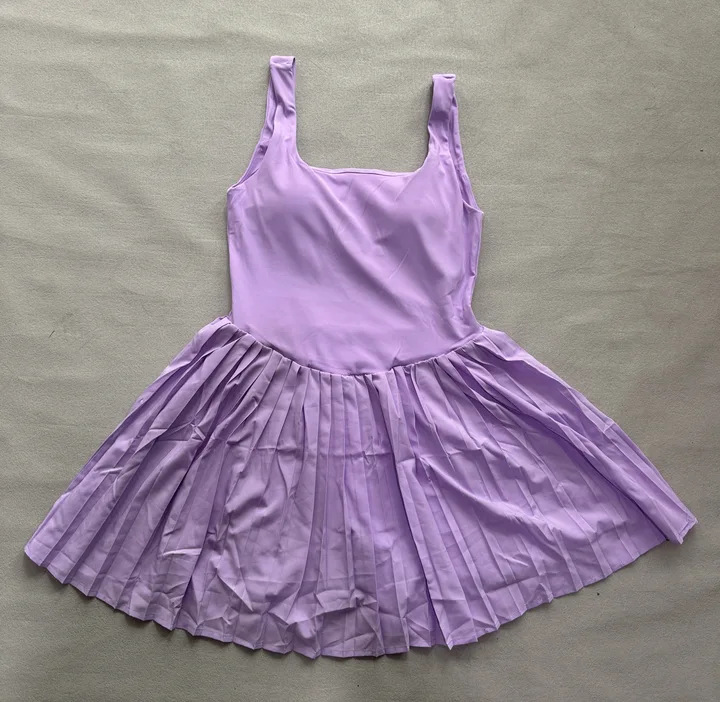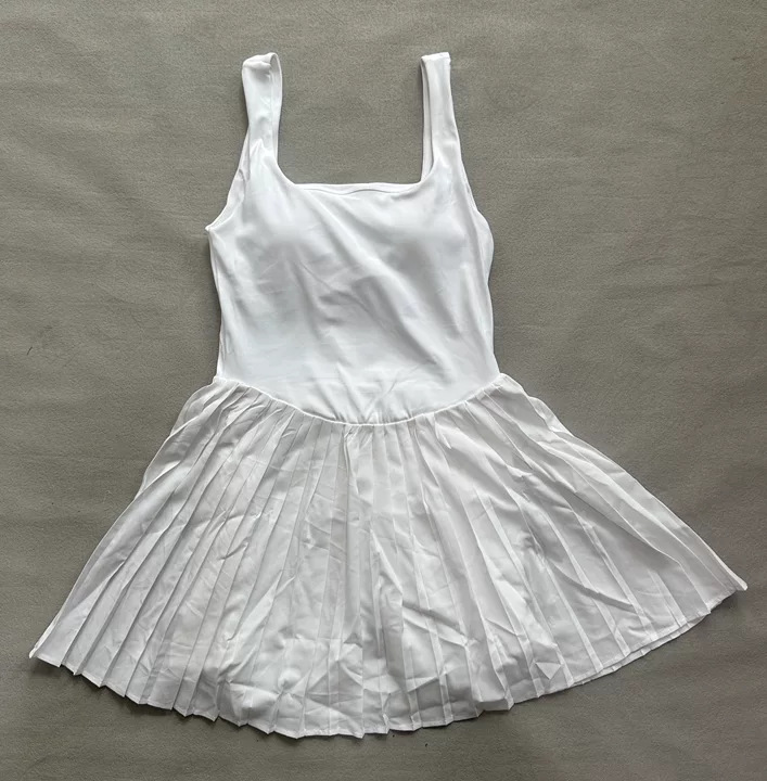 Nude Feel Faux Two Pieces Tennis Dress Anti Wardrobe Malfunction Base Fitness Pocket Pleated Dress Sports Back Shaping Dress Women
