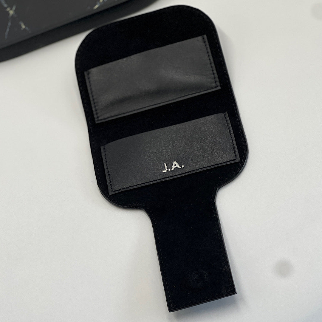 This luxe leather wallet is the ultimate accessory for the pickleball lover. Folds and closes with a little magnet, it's an understated, chic + safe way to keep a few cards, cash and/or business cards. When unfolded, it's in the iconic shape of a pickleball paddle and lined with beautiful suede interior. Slim and chic.