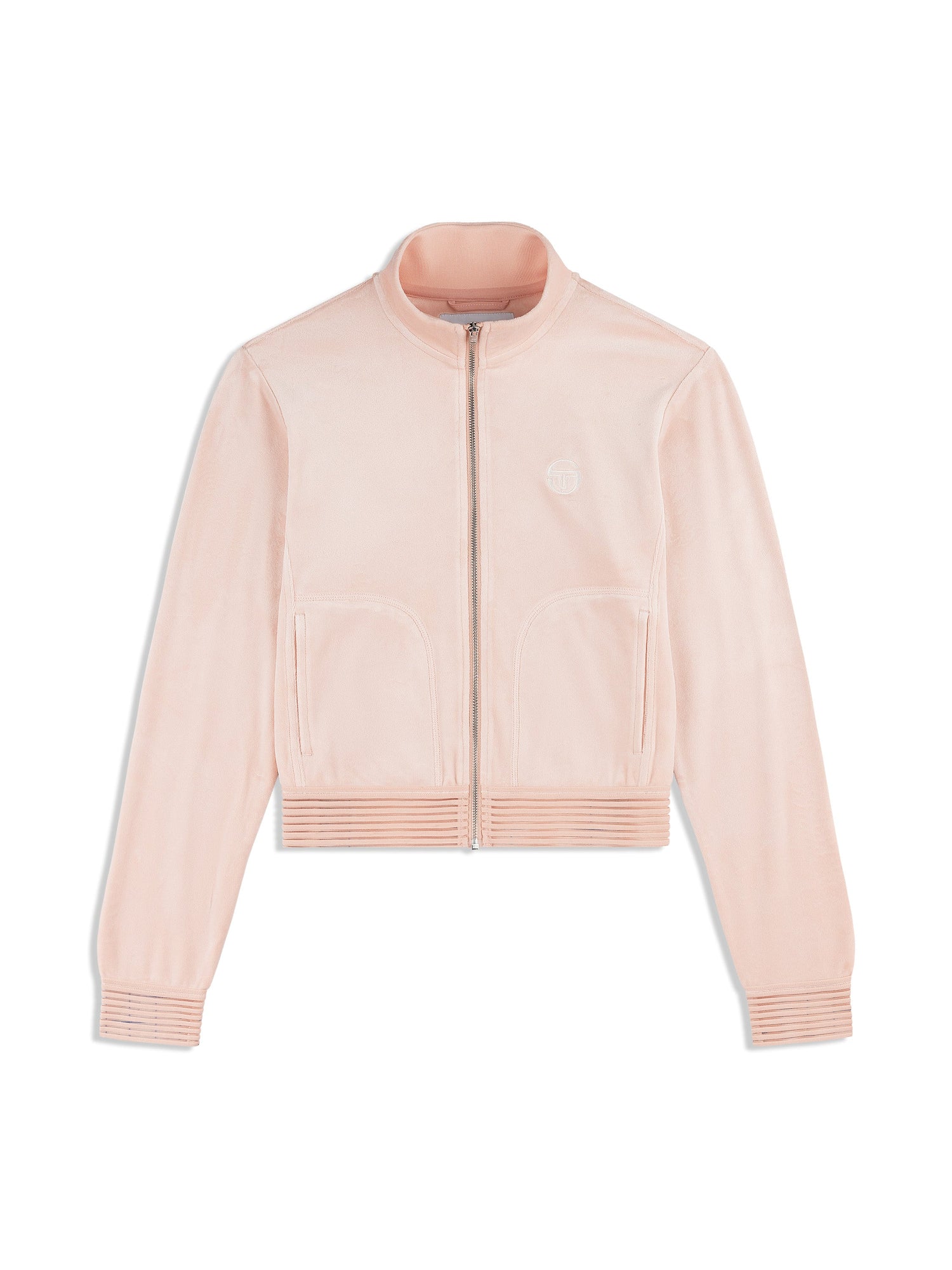 Sporty glamour, elevated. The Piera Velour Track Jacket is crafted from plush stretch velour for a soft finish that feels as good as it looks. Designed with princess seams for a flattering fit, this premium track jacket features sheer-striped novelty elastic trims for that extra special touch. Blurring the line between cozy and chic, this top is made for wherever the day (or night) takes you.