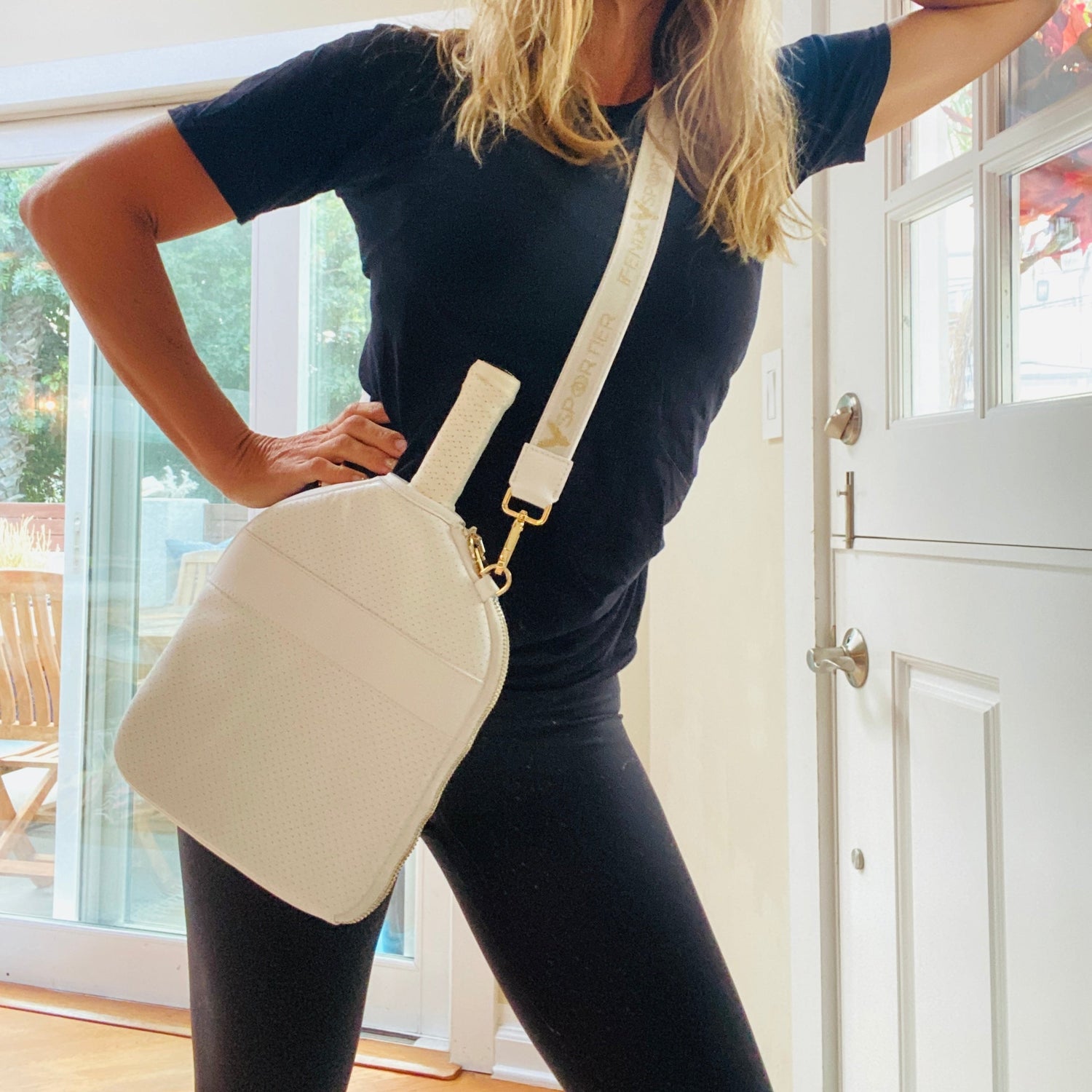 We hear it often: the (pickleball) addiction is real. So make pickleball chic. Styled and designed like our luxe tennis racket cover, this Pickleball crossbody bag/cover holds 1 or 2 paddles and has a detachable strap so it can be worn over the shoulder or crossbody.