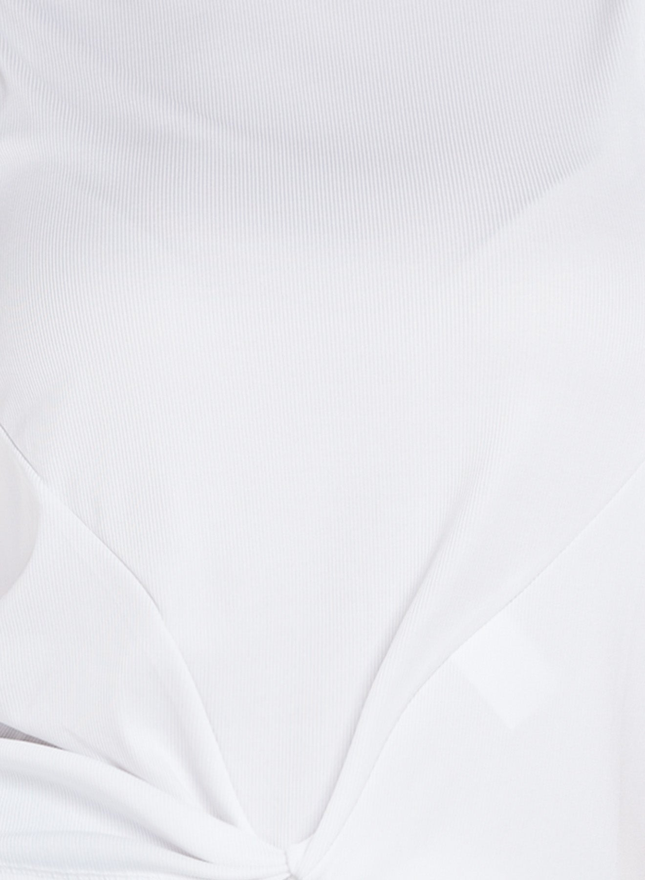 The basic white tank gets a fun twist! This round neck, full back tank has mesh inserts and a pre-twisted knot in the front with style lines for a flattering cropped look.